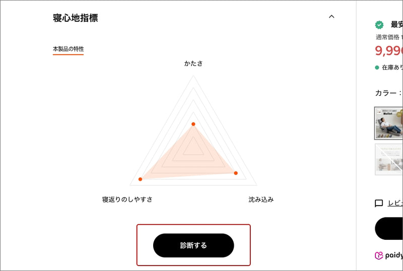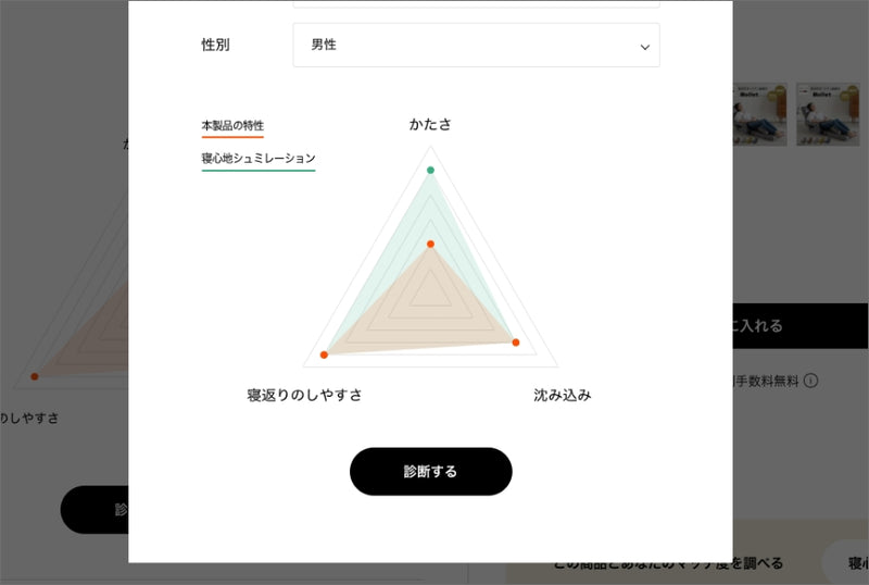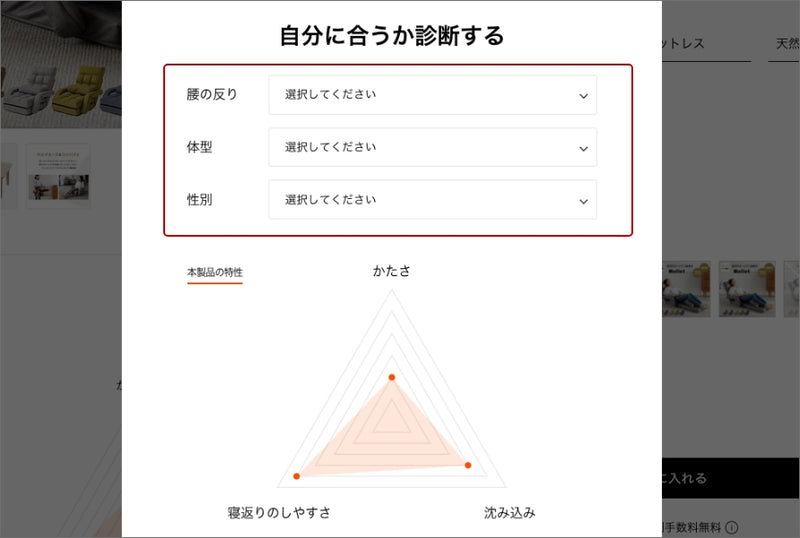 エムールの寝心地研究とショールームでの体験データをもとに、マットレスとあなたの相性を簡易的に診断するサービスです。