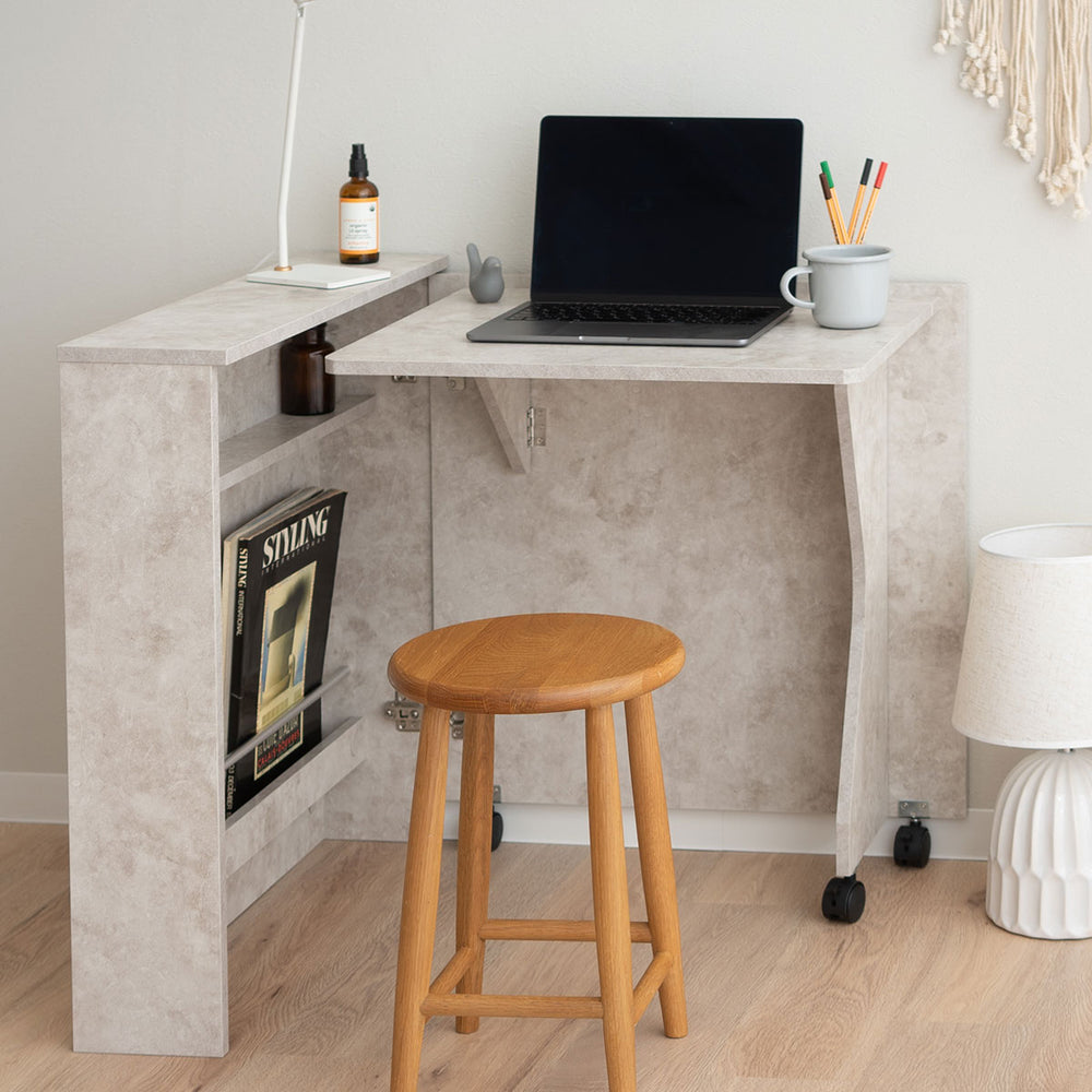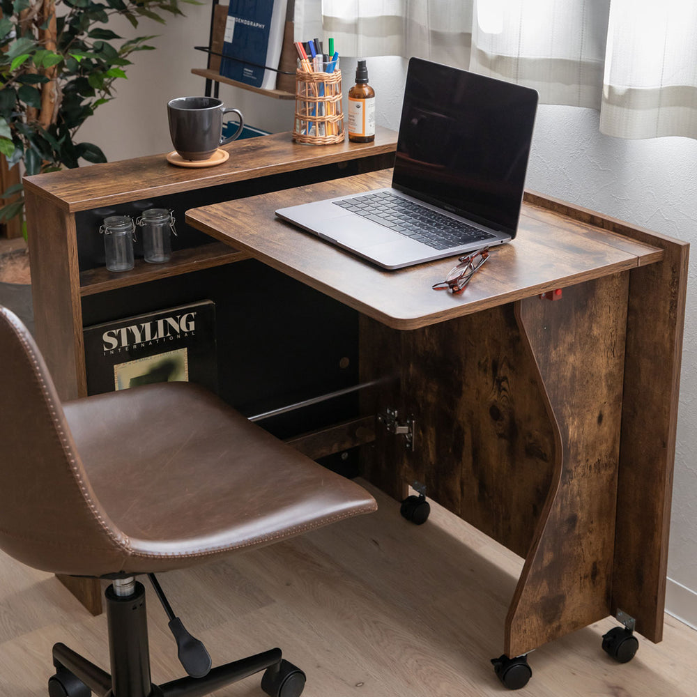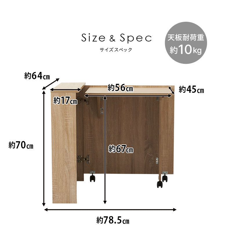 | サイズ | 使用時:約幅78.5×奥行64×高さ70cm 収納時:約幅64×奥行17×高さ70cm 天板(デスク部分):約幅56×奥行45×高さ67cm |