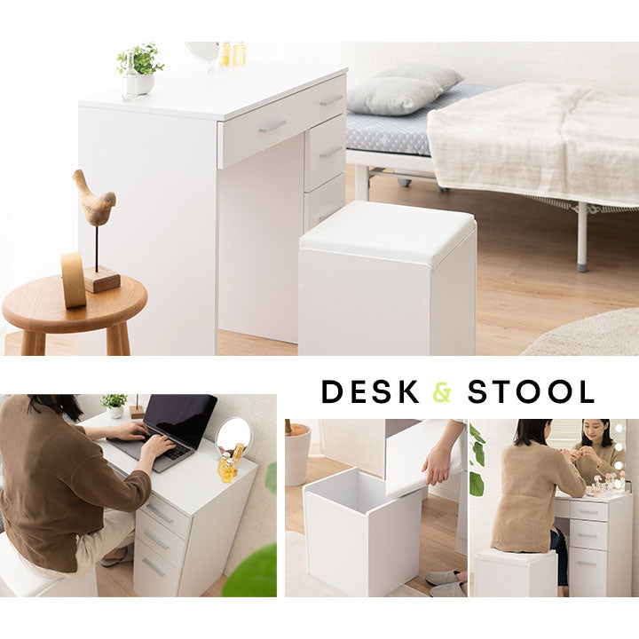 | サイズ | デスク:約幅70×奥行40×高さ70cm スツール:約幅36×奥行31×高さ42cm スツール内寸:約幅32.5×奥行27.5×高さ34cm |