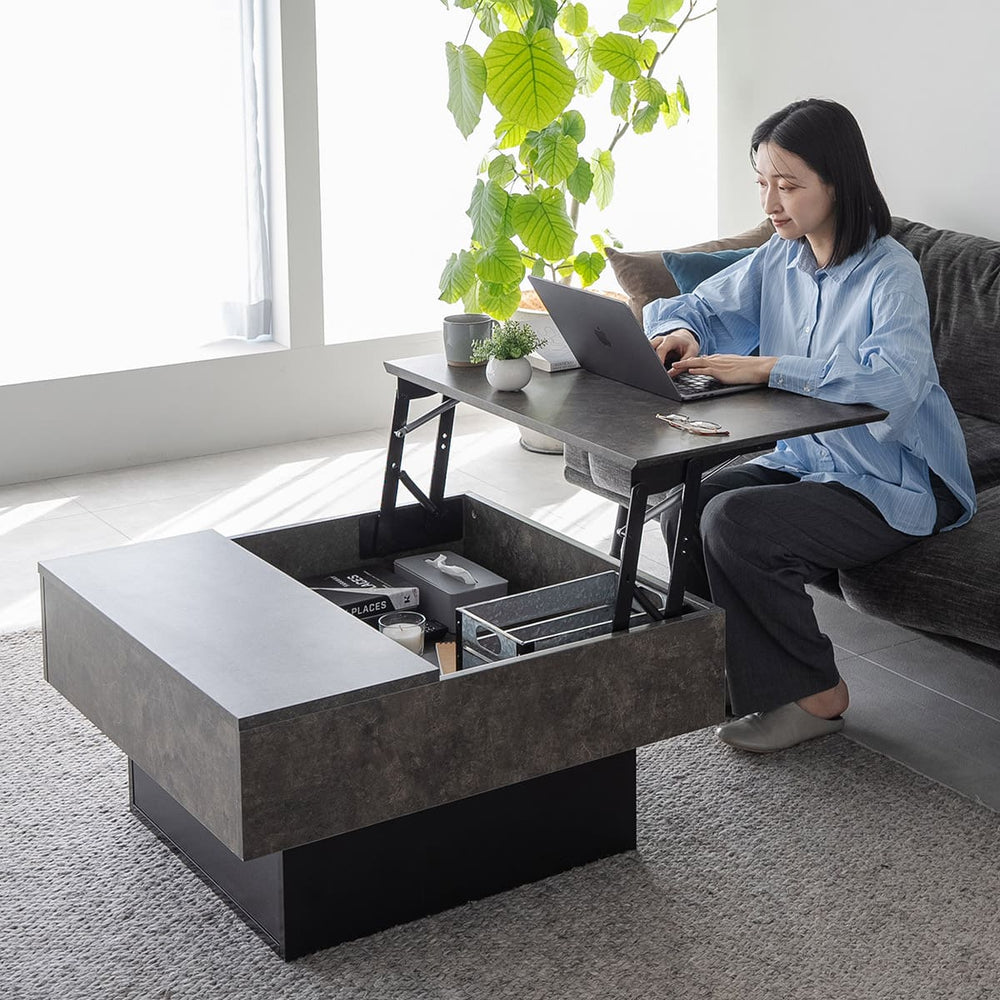 | サイズ | 全体:約幅80×奥行80×高さ42-67cm リフトアップ天板:約幅80×奥行50cm 天板下収納部(内寸):約幅76.4×奥行76.4×高さ16.3cm 引き出し収納部(内寸):約幅52×奥行56×高さ15.5cm |