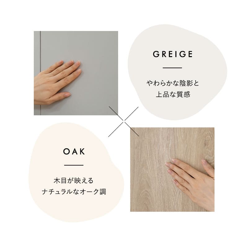 グレージュと温かみのあるオーク木目を組み合わせた、上品で落ち着いた配色が魅力です。