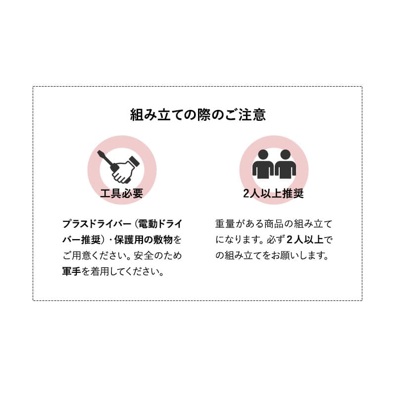| 組立所要時間 | 大人2人/電動ドライバー使用で約120分 ※プラスドライバーをご用意ください。 ※組立時、電動ドライバー・軍手・敷物があると便利です。 ※商品の特性上、重量があります。組立(特に上段を下段の上に重ねる工程)や移動の際は、必ず大人2人以上で行ってください。 |