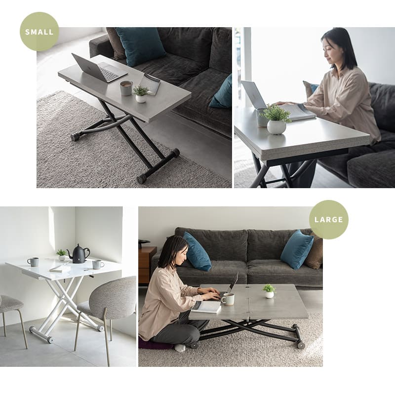 | サイズ | 通常時:約100×45cm 伸長時:約100×90cm 高さ:約18-75cm 脚:約幅45×奥行67-93cm |