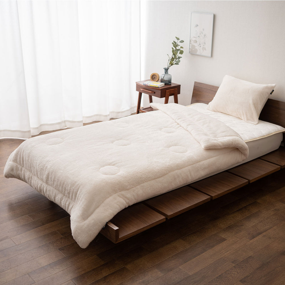 8mmロングパイルフランネルボアが空気をしっかり含み抜け毛も防ぎ、ふかふかの暖かさを長時間キープします。