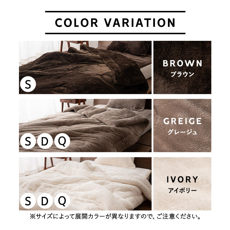 両面フランネル仕様と中わた1.5倍増量で、シリーズ中最上級のボリュームと保温力を誇ります。