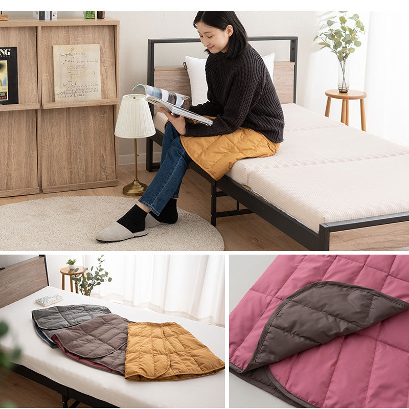 巻きスカートとしてもひざ掛けにも使える多用途設計で、キッチンやオフィスなど様々な場面で活躍します。