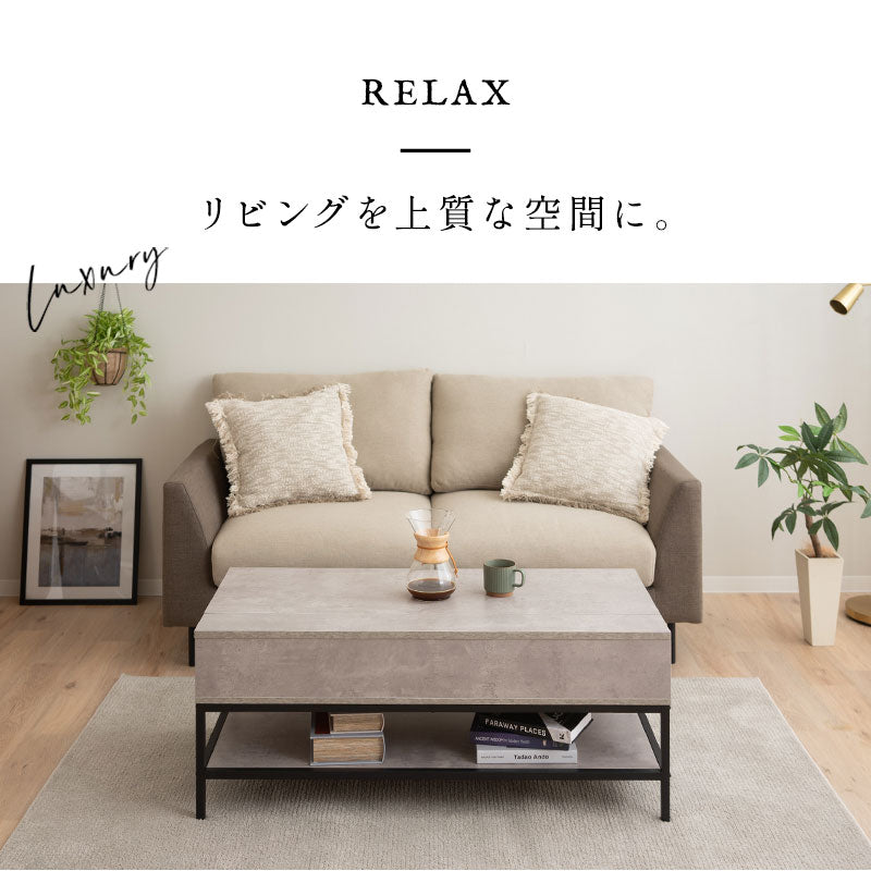 サイドスリットで安全に天板を持ち上げられ、大容量収納や飾り棚としての機能性も備えています。