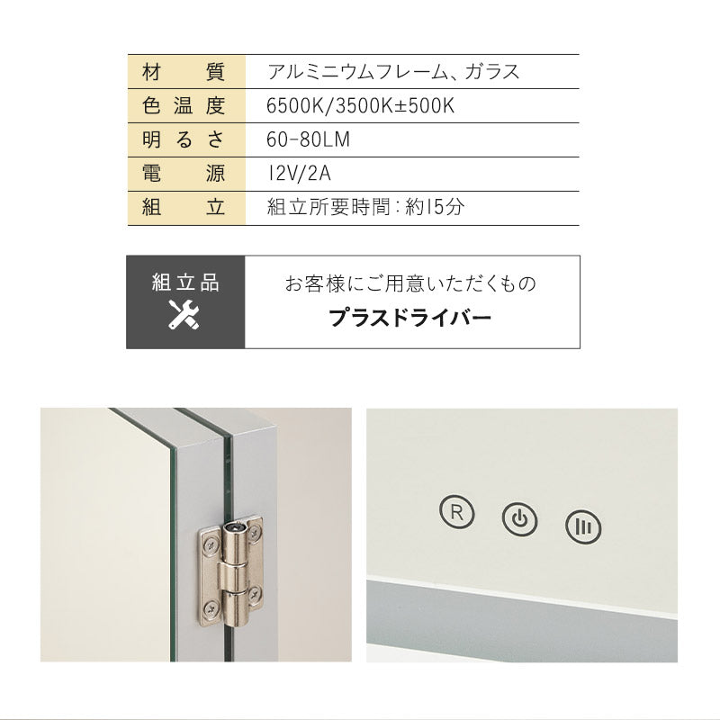 | 品名 | LEDライト付き 三面鏡 |