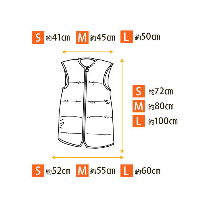 | サイズ | Sサイズ:肩幅約41×着丈約72×裾幅約52cm Mサイズ:肩幅約45×着丈約80×裾幅約55cm Lサイズ:肩幅約50×着丈約100×裾幅約60cm |