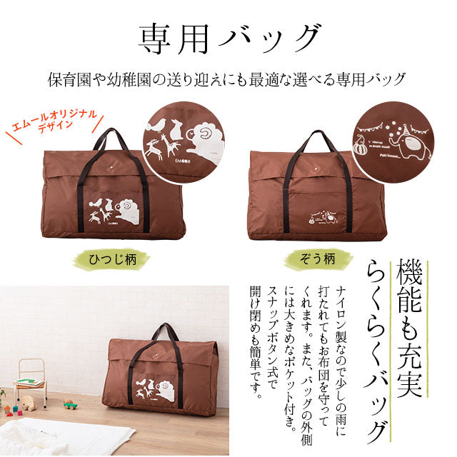 専用バッグ付きで、幼稚園や保育園への持ち運びや旅行先への持参にも最適です。