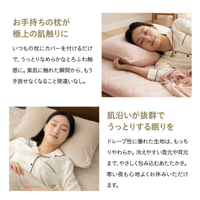 優れたドレープ性の生地が首元や耳元までやさしく包み込み、寒い夜も快適に眠れます。