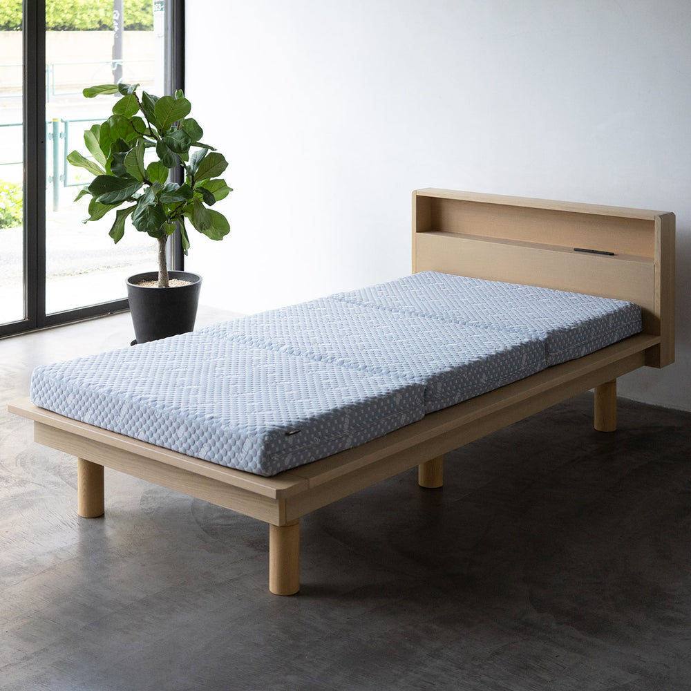 タモ材、桐すのこ、天然い草を贅沢に組み合わせ、癒やしの雰囲気と心地良い眠りを提供します。