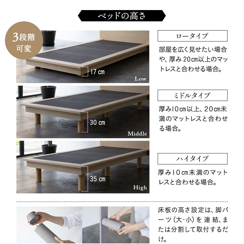 床板の高さを好みに合わせて調整できるため、自分にぴったりの快適な高さで使えます。