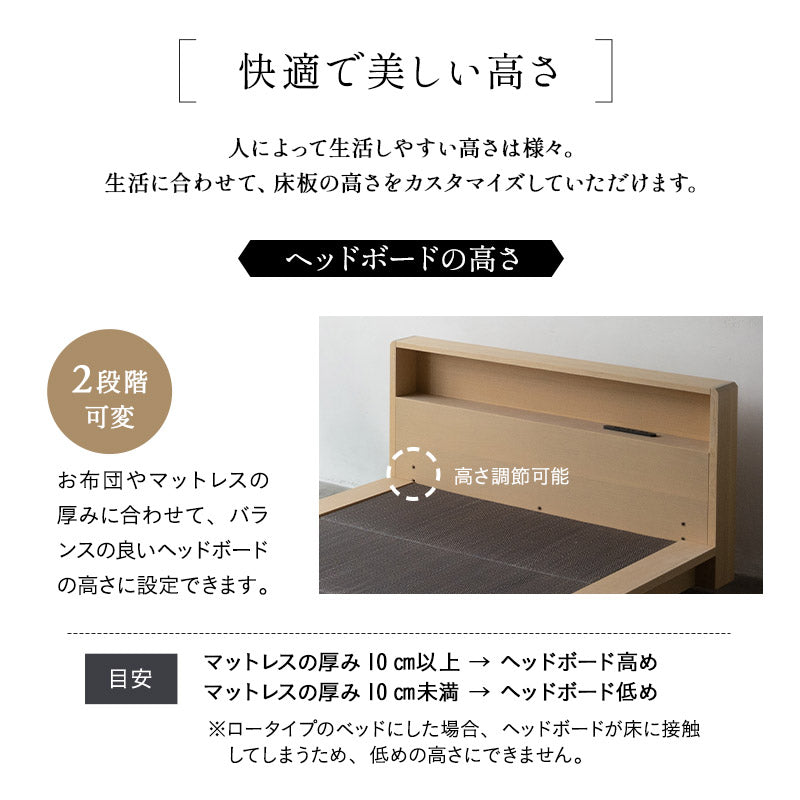 日本の住空間や体型に最適化された薄型・三つ折りマットレス対応の畳ベッドです。
