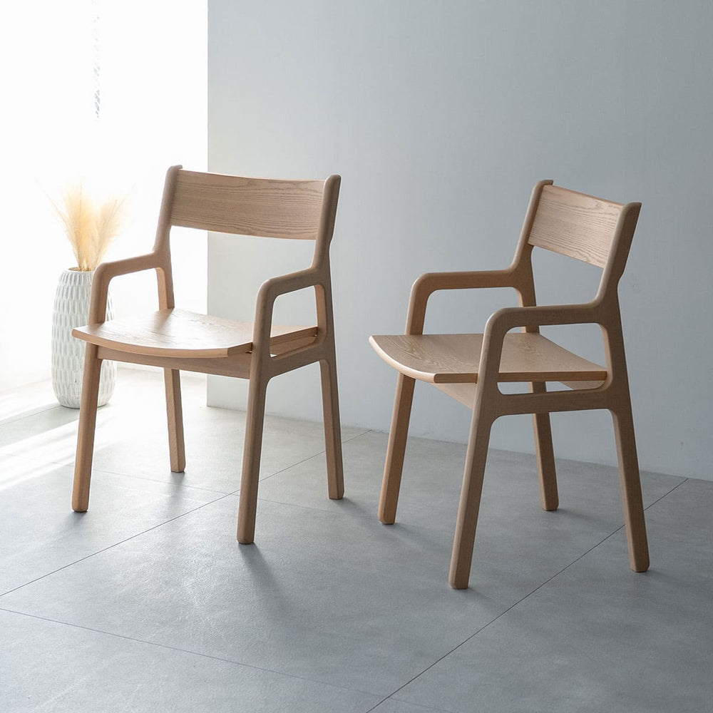 明るい木目と装飾を抑えたシンプルデザインが、さまざまなテーブルや空間に自然に調和します。