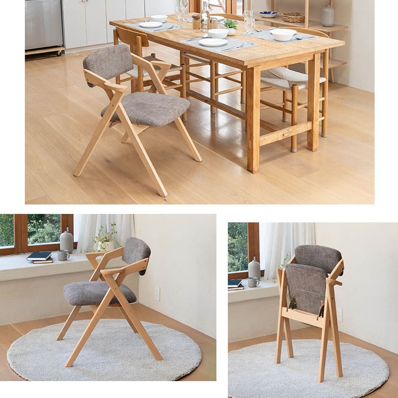 食事のしやすさと食後の軽い休息を両立する設計はそのままに、折りたたんでコンパクトに収納できる機能性を加えました。