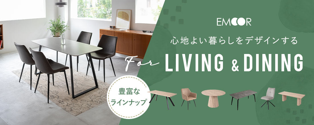 約135×85cmの天板は、4人で広々と使え、食事だけでなく、学習や作業まで、多用途に活躍します。来客時には6人まで対応可能。
