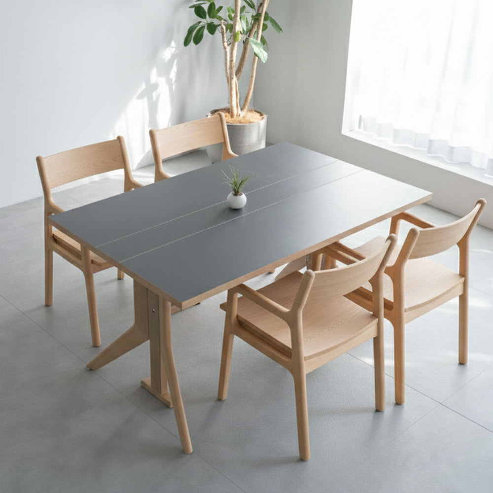 明るい木目とフラットな天板、落ち着いたグレートーンのデザインが、空間に馴染みつつ、上質さを演出します。