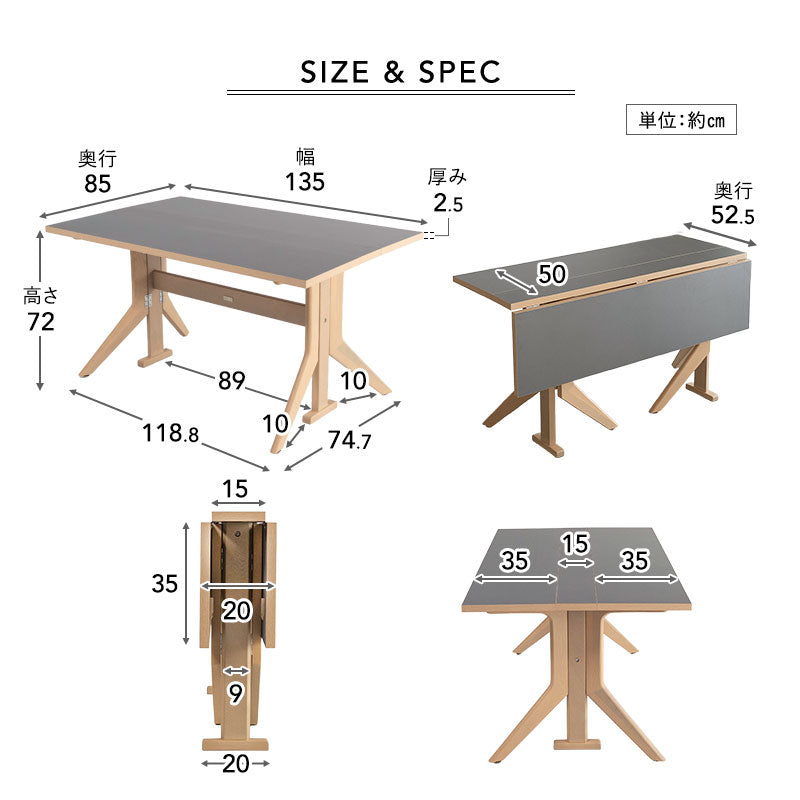 | サイズ | 全体:約幅135×奥行85×高さ72cm 片面オープン時:約幅135×奥行52.5×高さ72cm 折りたたみ時:約幅135×奥行20×高さ72cm |