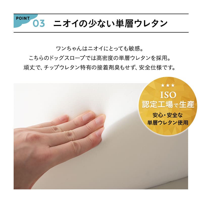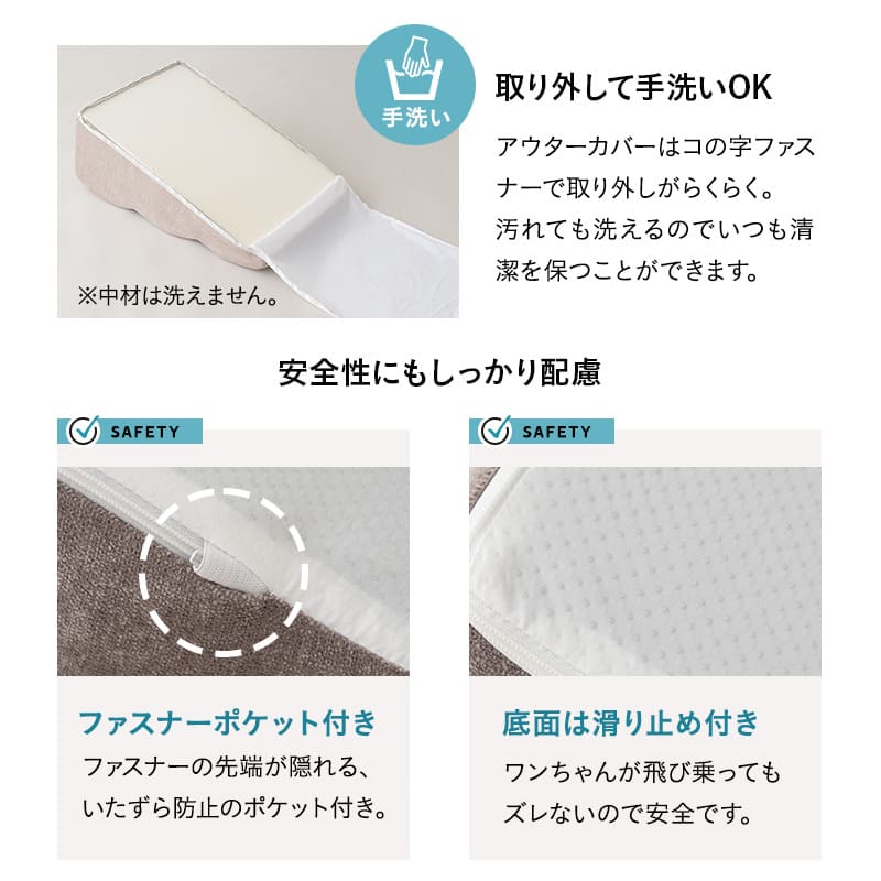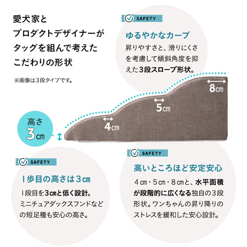 階段が苦手な愛犬のために開発されたスロープ形状で、昇り降りが無理なく快適にできます。