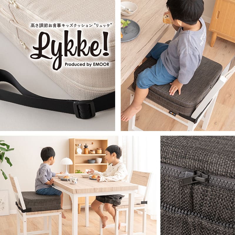 「リュッケ」は高さを3段階で調整できるお食事クッションで、成長に合わせて長く使えます。