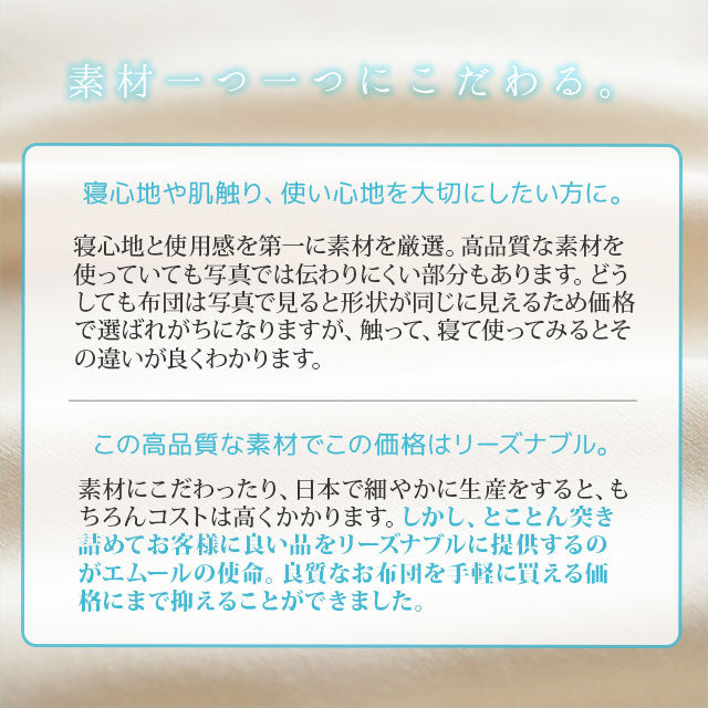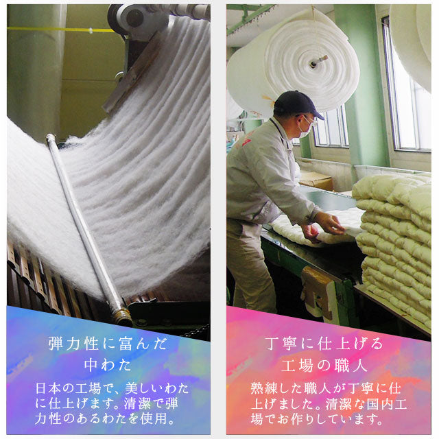 日本製で高品質、羽毛や獣毛が苦手な方にも安心してお使いいただけます。