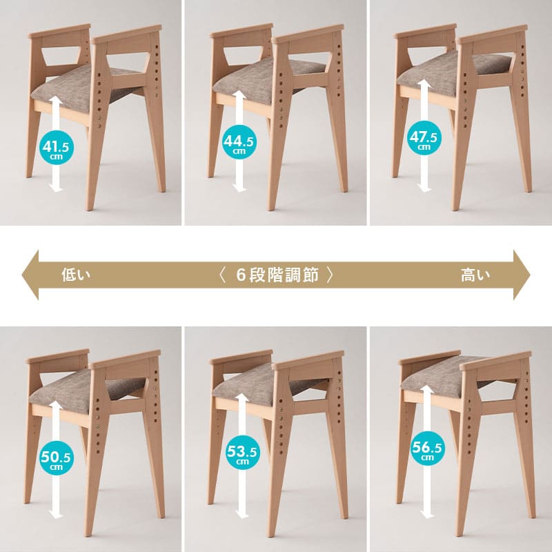 座面は6段階で高さ調節が可能となっており、子供から大人まで幅広く家族で使えます。