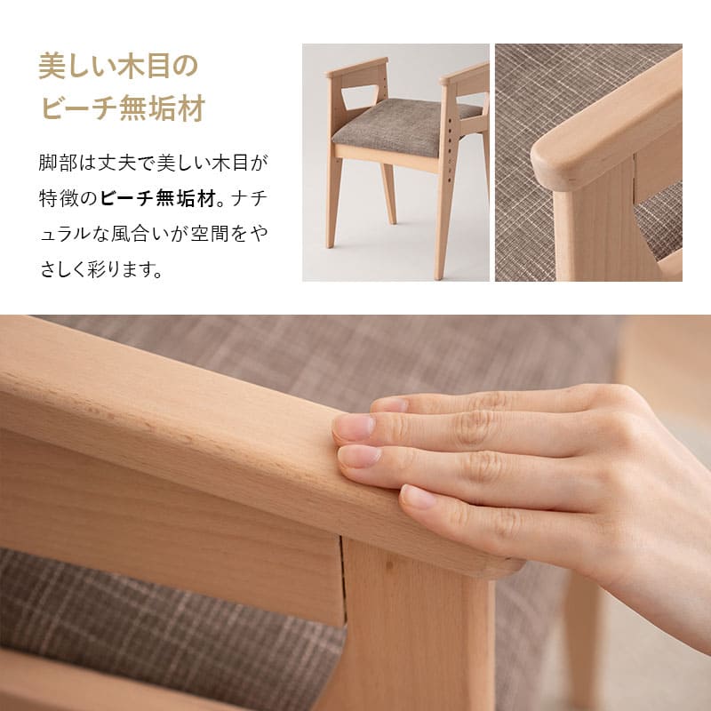 肘掛け付きで座りやすく立ち上がりやすい設計なので、ご年配の方にも優しいチェアです。