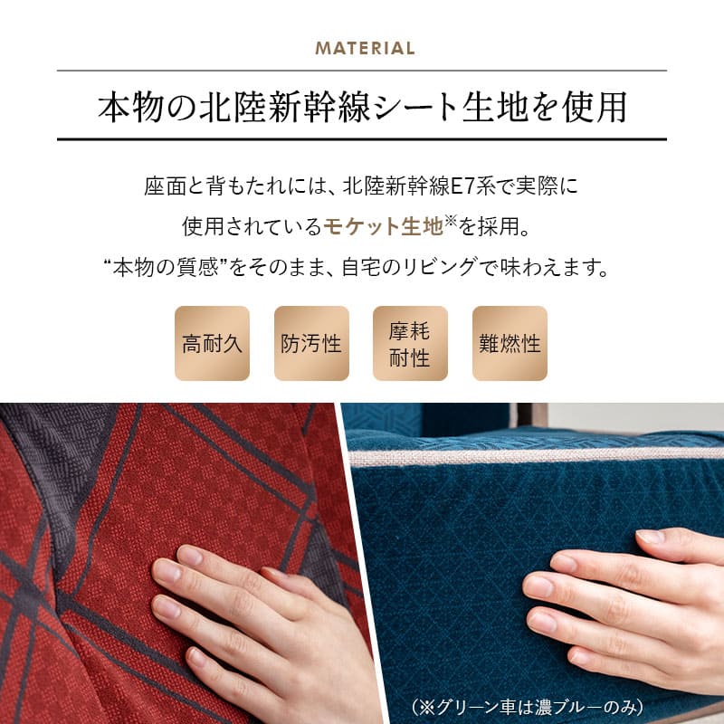 北陸新幹線E7系実車の座席生地を使用し、本物の質感と優れたデザインを自宅で楽しめます。