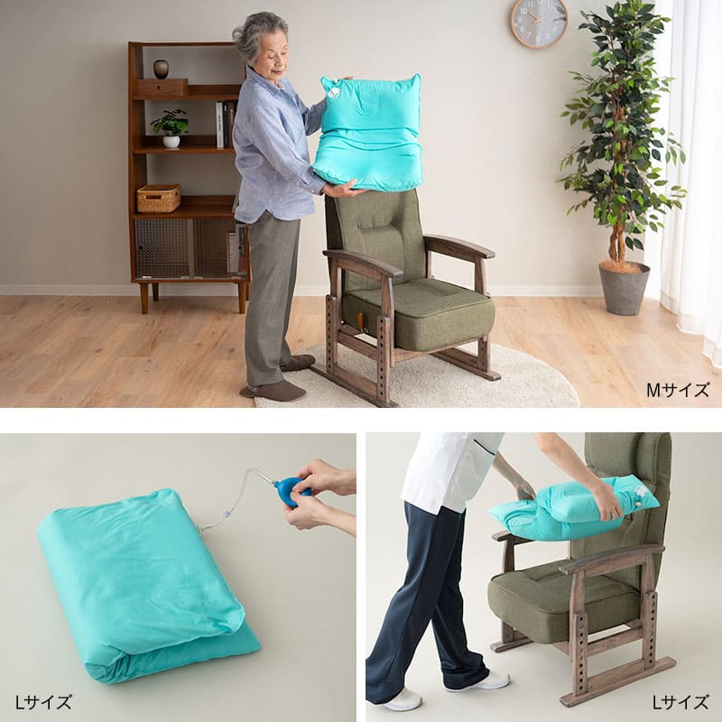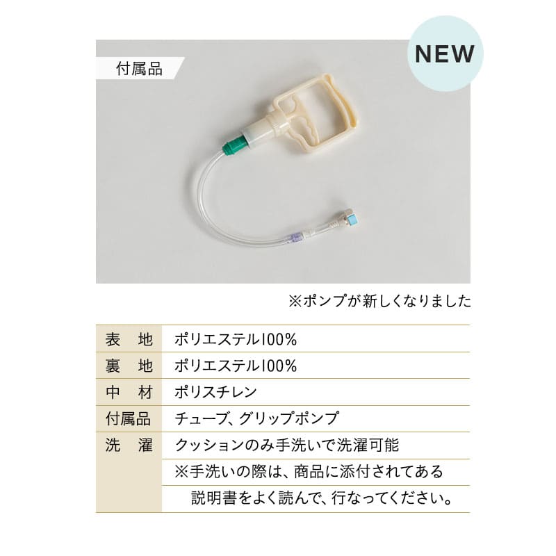 空気量はポンプ式で手軽に調節でき、好みの柔らかさで何度でも使えます。