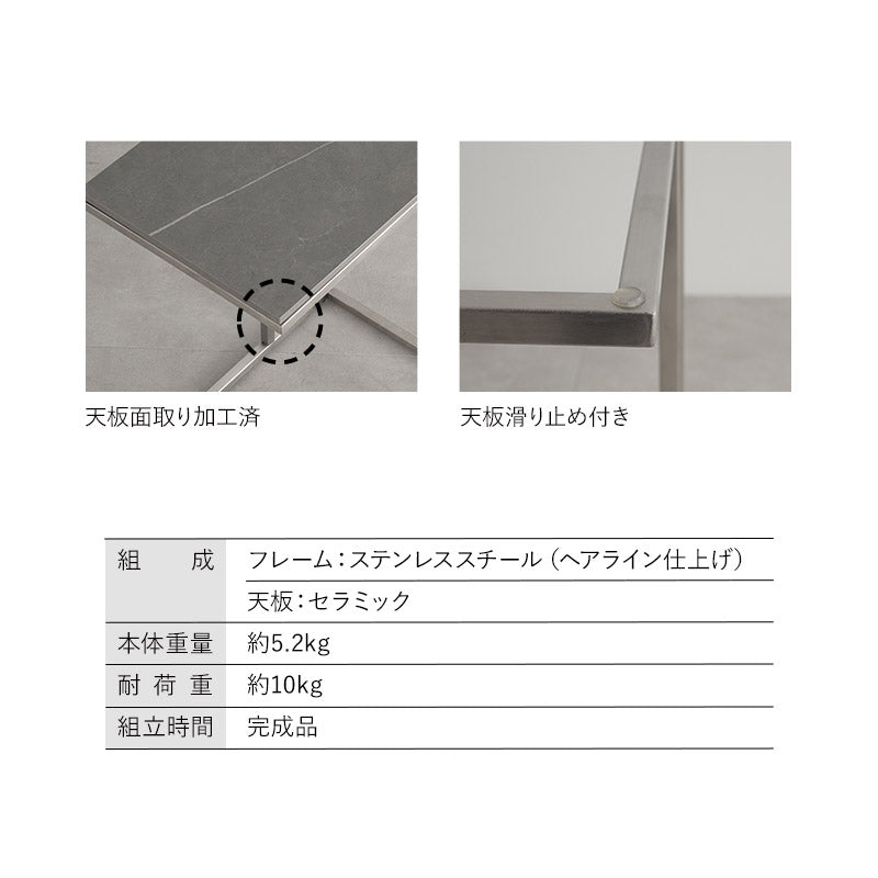 | 組成 | フレーム:ステンレススチール(ヘアライン仕上げ) 天板:セラミック |
