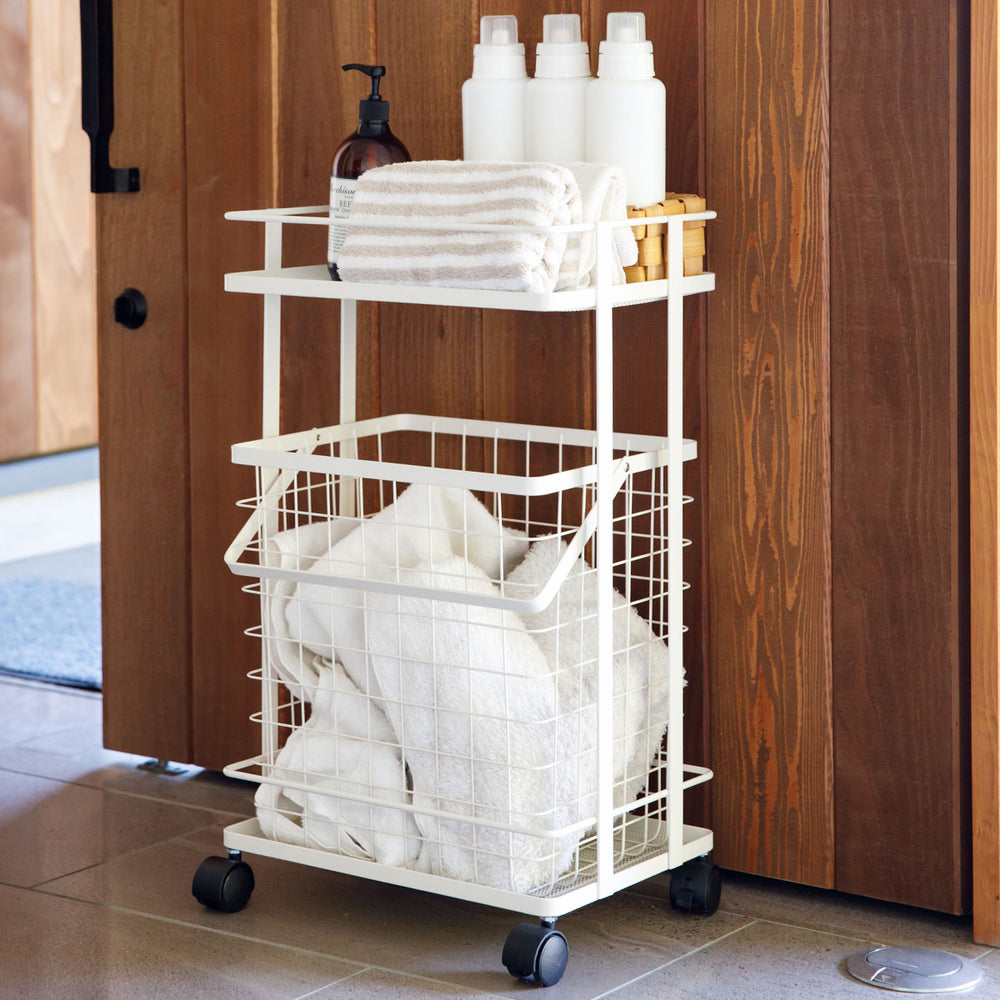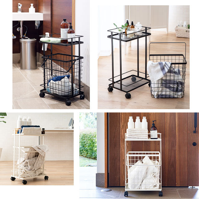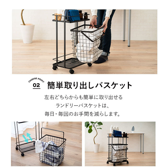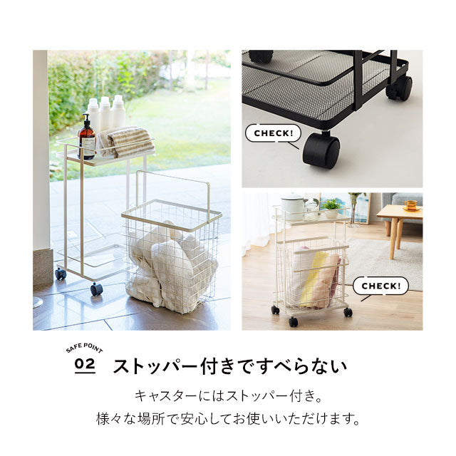 取り出し簡単バスケット付きランドリーワゴン TUBER
