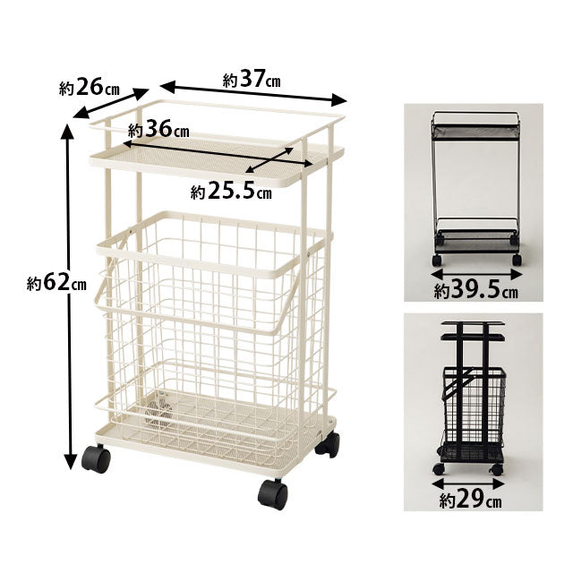 | サイズ | 全体(キャスター含む):約幅39.5×奥行29×高さ62cm 棚:約幅36×奥行25.5cm バスケット:約幅31.5×奥行25×高さ36cm (約1.1kg) |