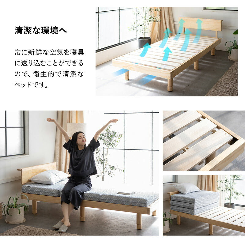 2種類の天然無垢材を使用し、自然の温もりと洗練された美しさを両立したすのこベッドです。