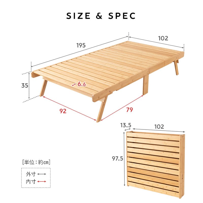 | サイズ | シングルサイズ:約幅102×奥行195×高さ35cm (折りたたみ時:約幅102×奥行13.5×高さ97.5cm) |