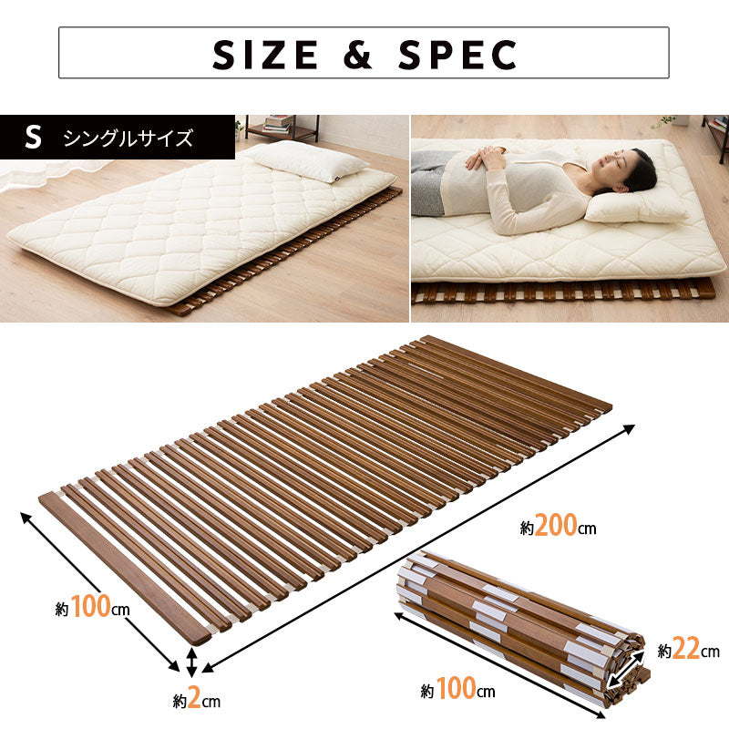 調湿・抗菌・保温効果に優れた天然木桐材ロール式すのこベッド