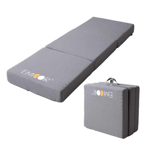 3つ折りで持ち運びや収納が簡単なコンパクト設計。取っ手付きでアウトドアや車中泊にも便利です。