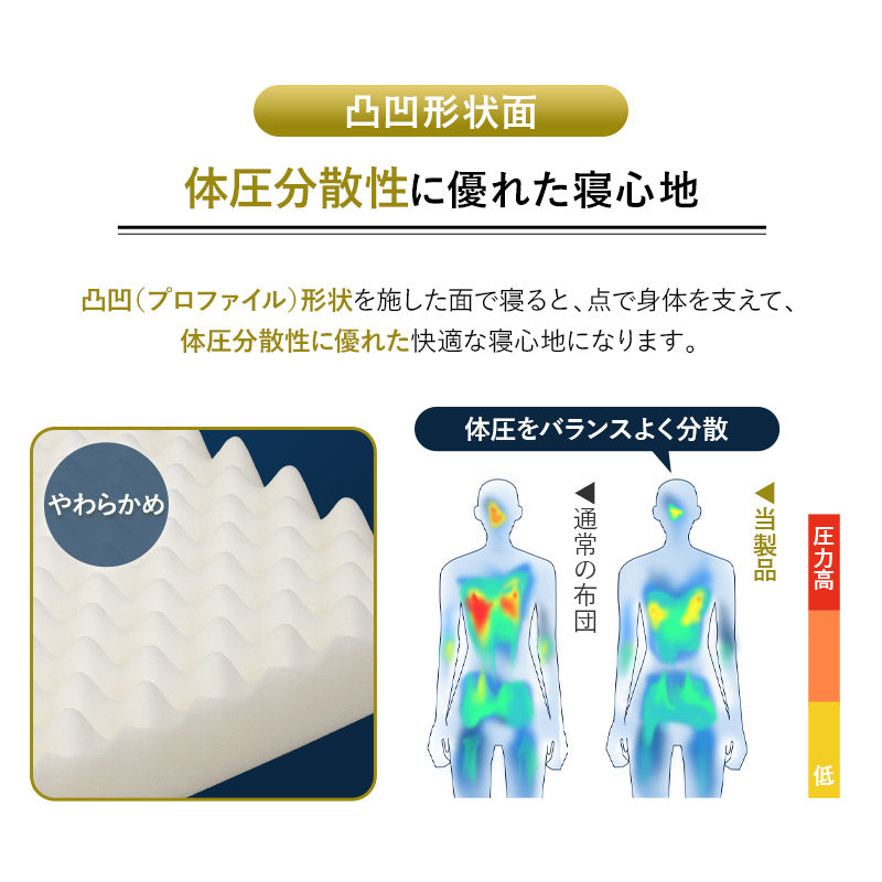 高反発ウレタン170Nを使用したリバーシブル設計で、凸凹面とフラット面を選んで快適な寝心地を実現します。