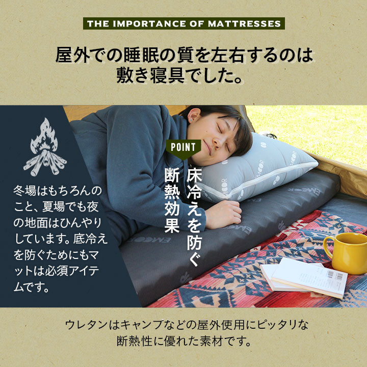 ウレタンの凸凹構造が体圧を分散し、凹凸のある地面でも快適な寝心地を実現します。