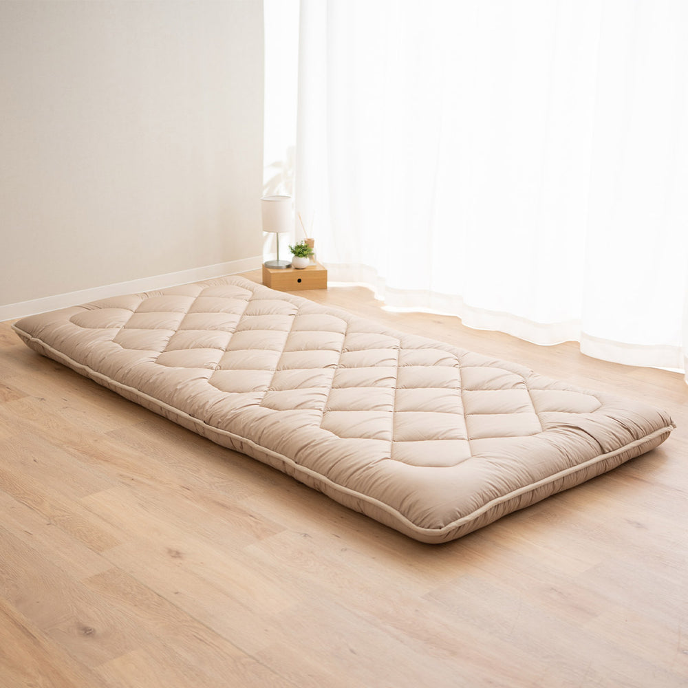 | 組成 | 生地:綿100%(200本ブロード) 中芯:ポリエステル固わた 3.5kg 中わた:ポリエステル100% (帝人マイティ―トップⅡ®ECO 50%使用) 3.5kg |