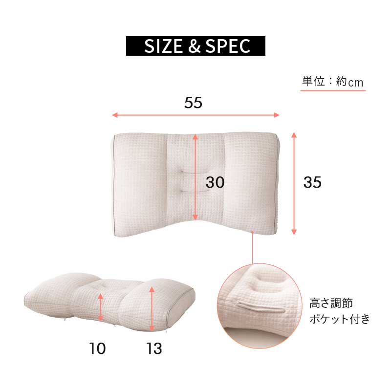 サポートピロー 高さ調節可能 自分に合う枕 横向き寝 枕 まくら ピロー