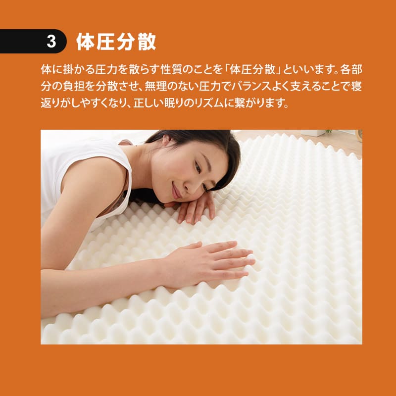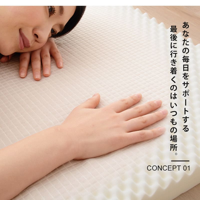 深い凹凸構造が体圧をバランスよく分散し、腰や肩への負担を軽減し快適な眠りを実現します。