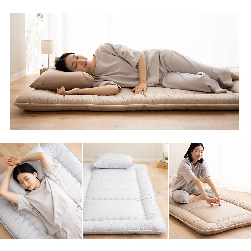 信頼のOKADAブランドが誇る、全て日本製の軽量敷き布団は、ボリューム感と職人のこだわりを両立しています。