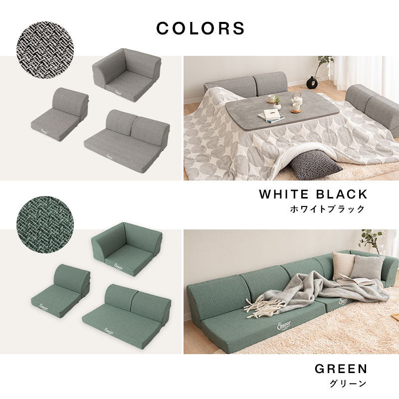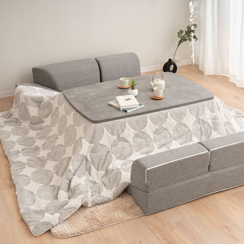 3ピース構造により部屋の間取りに合わせて自由にレイアウトでき、こたつとの相性も抜群で冬でも快適です。