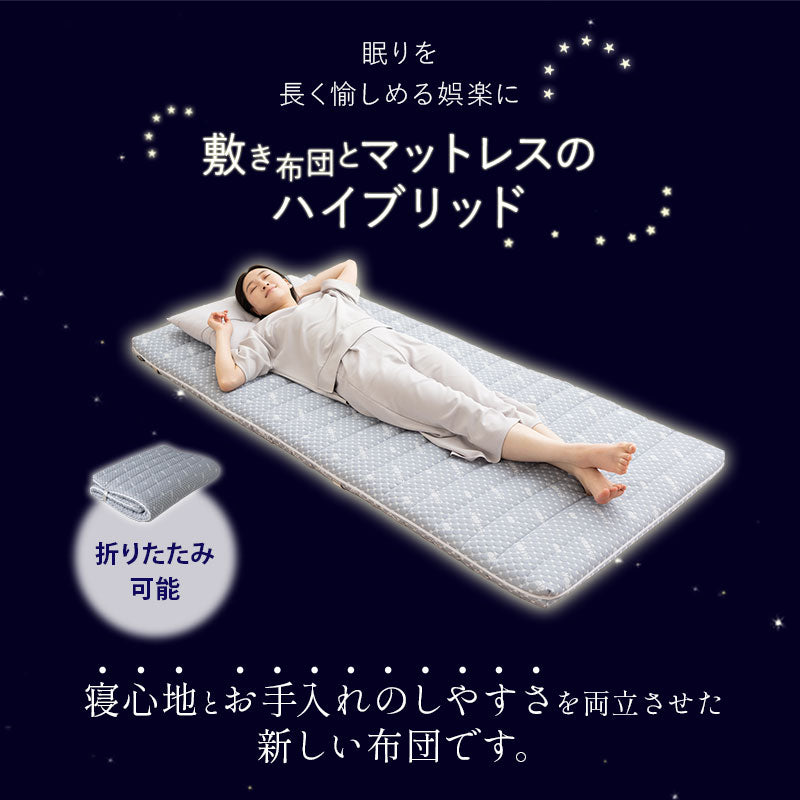 敷き布団とウレタンマットレスの長所を融合し、寝心地とお手入れのしやすさを両立した新しい布団です。