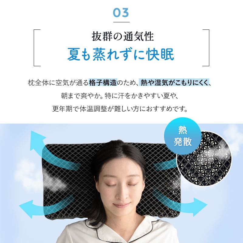 格子構造による高い通気性で蒸れにくく、夏でも快適な睡眠環境をサポートします。