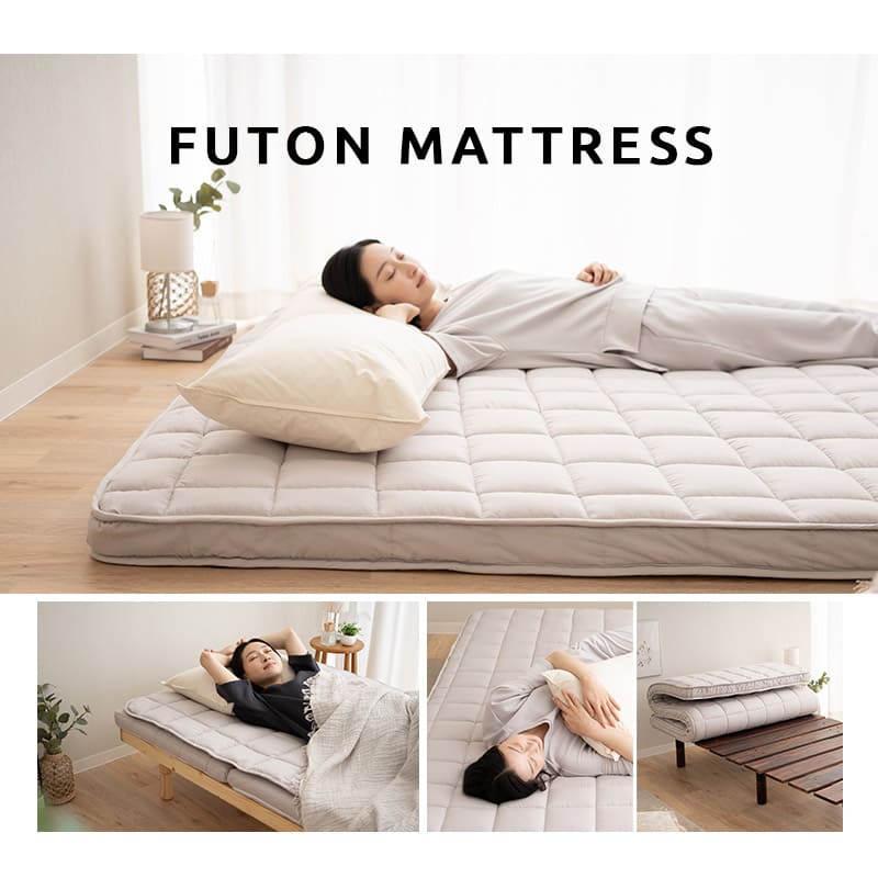布団の柔らかさとマットレスの高い耐久性を兼ね備えた、収納しやすい三つ折りタイプです。